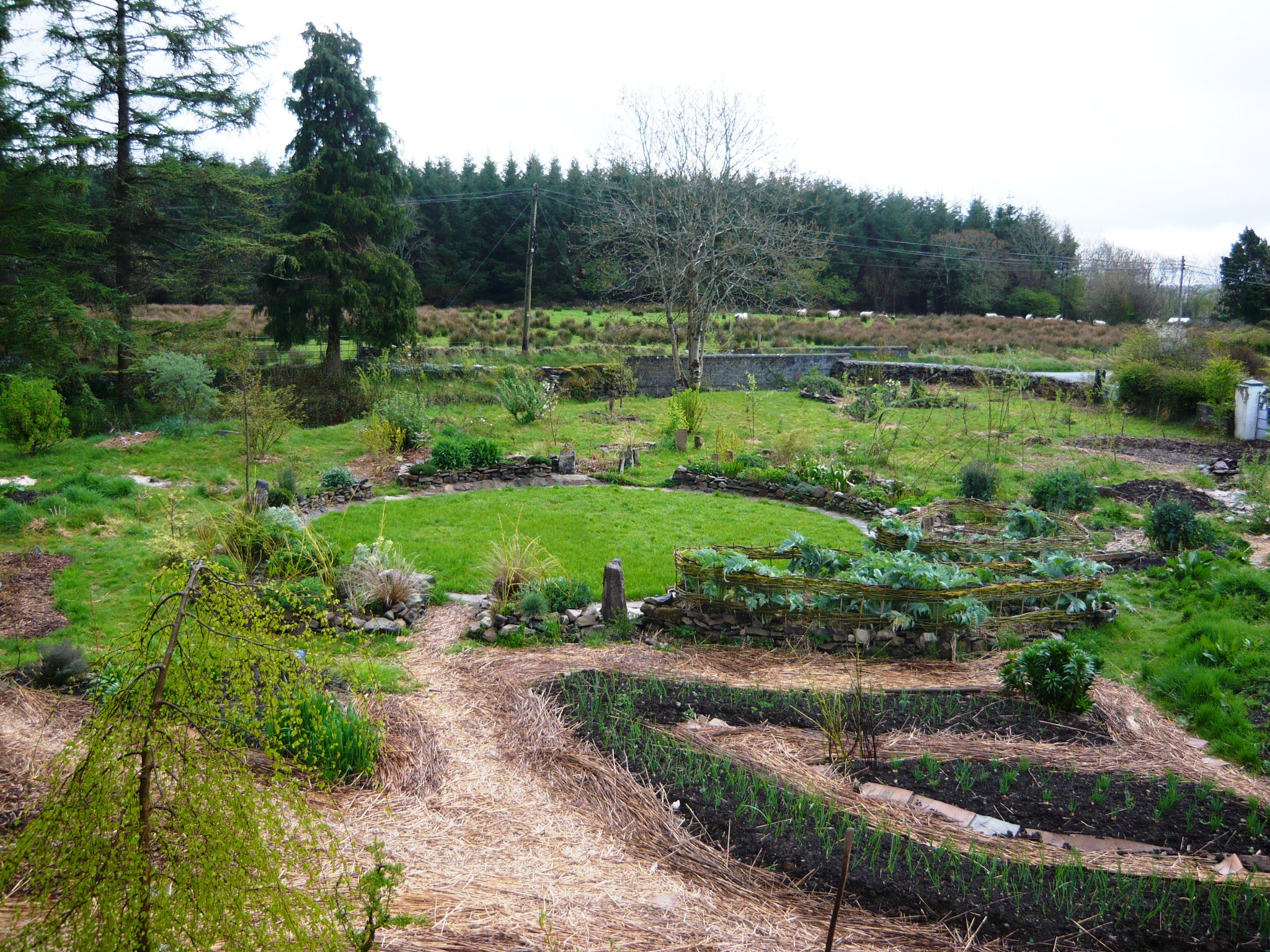 The last month has seen some changes to our main garden circle. We have finished the work on the stone mowing strip all around the edge. Last year the grass grew into the stone wall at the front of the raised beds and it is very nice to have gotten rid of that problem. We are now also able to go around the circle with our push mower and cut the grass all the way to the edge without a problem. After the cement under the stones had set we added hypertufa to the cracks and brushed it in to set and kept watering it for four days, three times a day. This prevents the hypertufa from drying out too quickly. Hypertufa is a very versatile material to use in the garden. We make ours out of one part sand, one part cement and one part compost and a generous helping of PVA. The compost makes the dried mixture slightly porous and provides a few nutrients for mosses to grow. It can be used to create sculptures and planting troughs that look very natural after a while due to the moss.