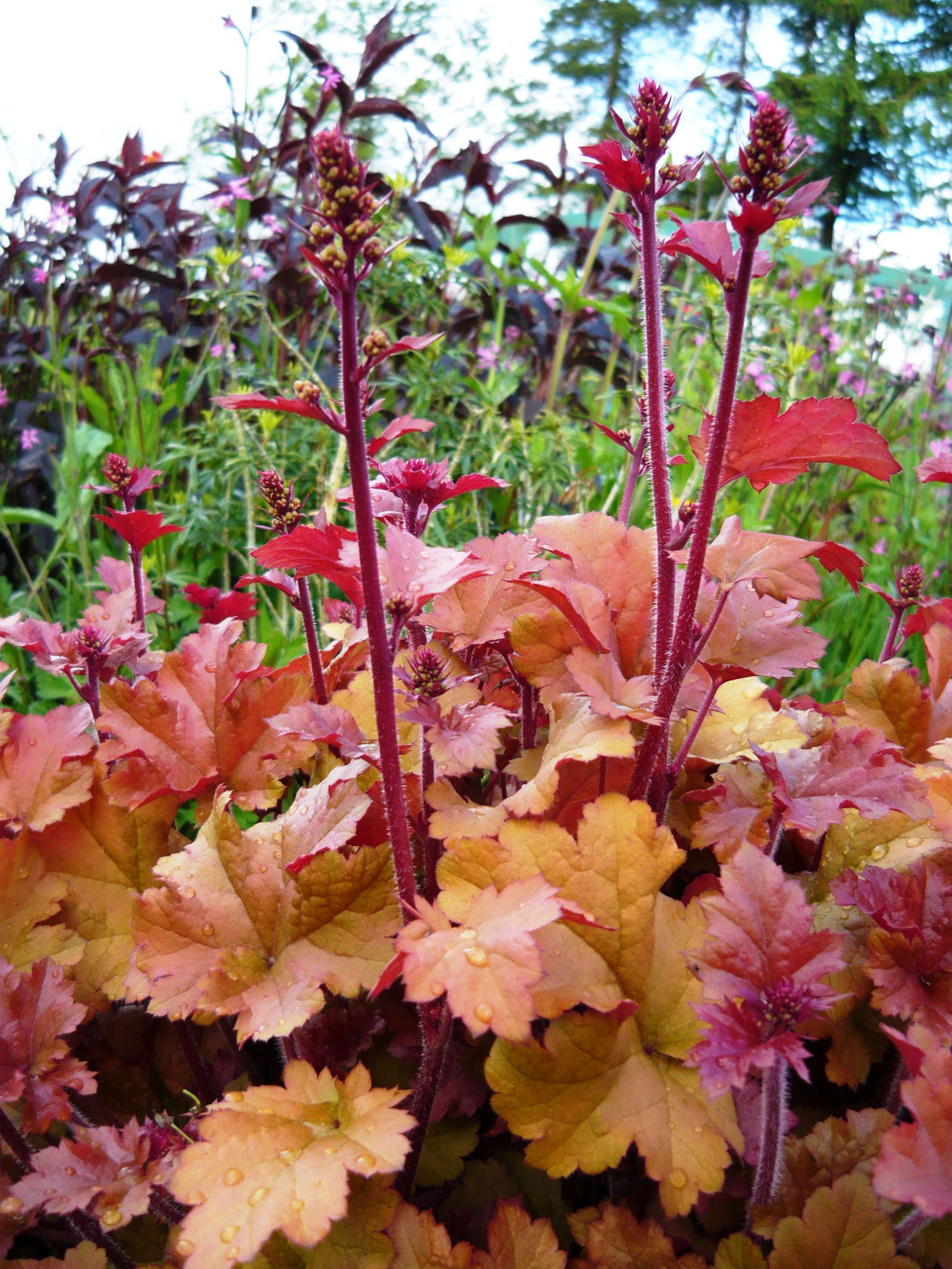 We will leave you now, with a picture of one of our favourite heuchera, Marmalade. It looks best in full sun, so we can admire it occasionally, between the showers. We are hoping the weather will warm up a bit in June so all our flowers and vegetables will come out to play.