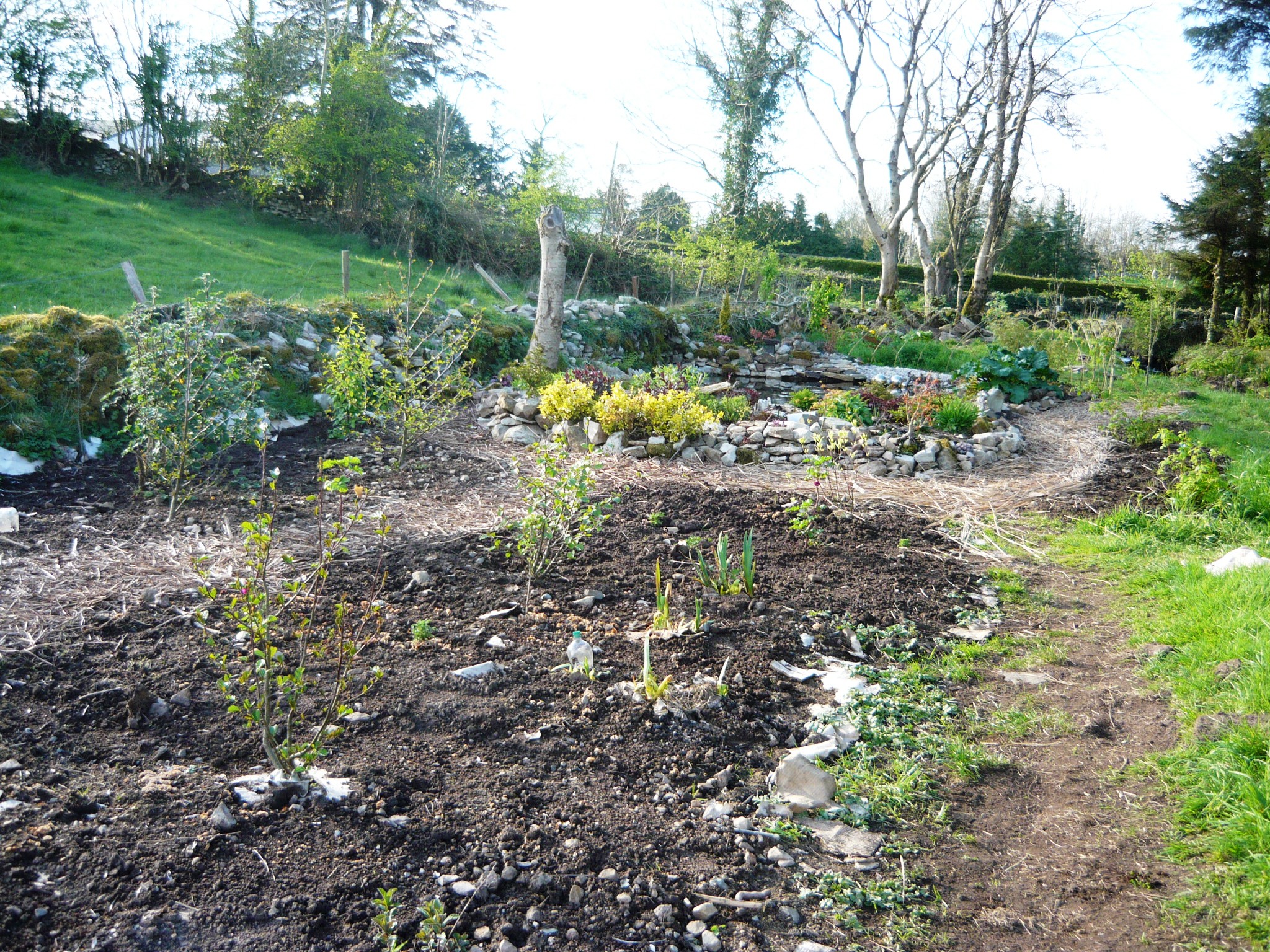 In the kitchen garden our potatoes are doing mighty, and we have now added three tires to each stack and earthed them up several times. We have not grown potatoes here before, so it is nice to see them doing so well. We have also planted some Oca tubers and can’t wait to see how they do. Once a highly praised food by the Incas, we are hoping they will do well in our rainy climate. The slugs are abundant so unfortunately a lot of our salad and brassicas have been devoured, and not by us. At least they have had the decency to leave our onions and artichokes alone.