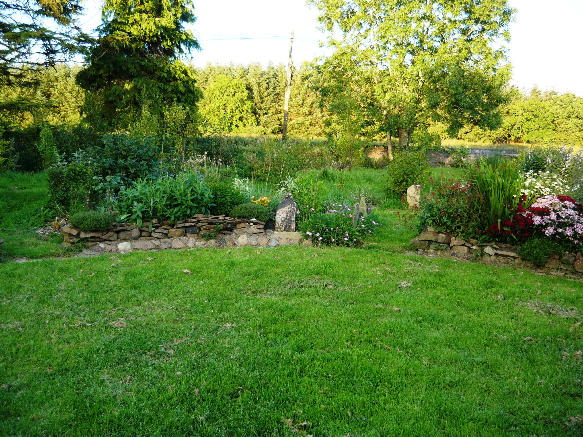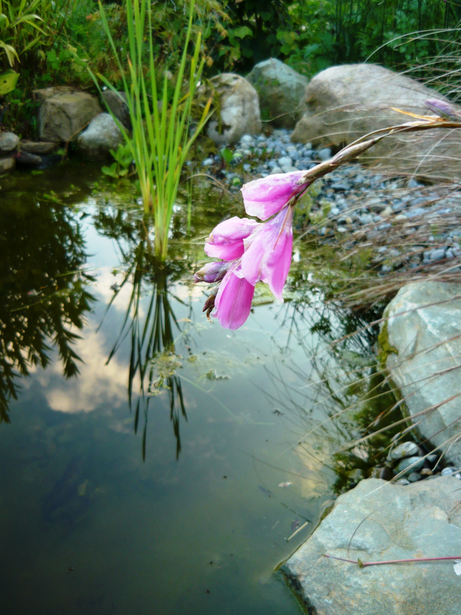 Our circle looks lovely even though we have been busy the whole month with our renovations and extension. It has a lot of weeds growing amongst the flowers but we just pull them out as we pass by. Apart from that all we have managed to do is cut the grass a couple of times but as long as the structure is there in a garden a few weeds do not matter too much and they can be removed as and when the opportunity arrives. We are planning to tidy the whole garden up in autumn, when the grass and weeds slow down. You can see what happens to the circle throughout the months in the category ‘Elemental circle’. For now we are anticipating the fireworks soon to take place when the crocosmia, Lucifer open its buds. It is a red explosion, not easily forgotten.