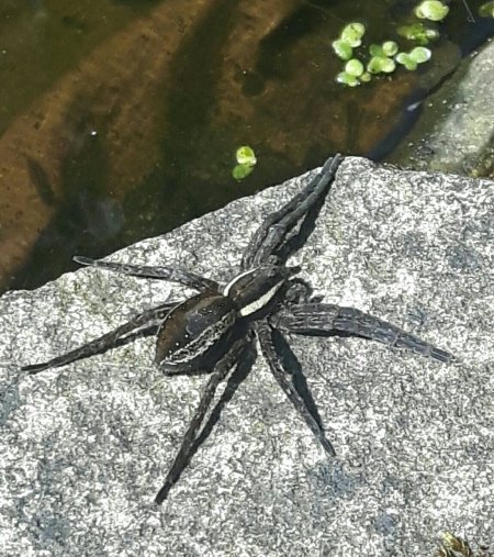 We have encountered some lovely inhabitants of the land in the past month. Down by the pond we came across a beautiful swamp spider for the first time. It is by far the most imposing spider in Ireland with a length of about 25 mm and lovely stripes down the sides. We found him sunning himself on a stone right next to the water.